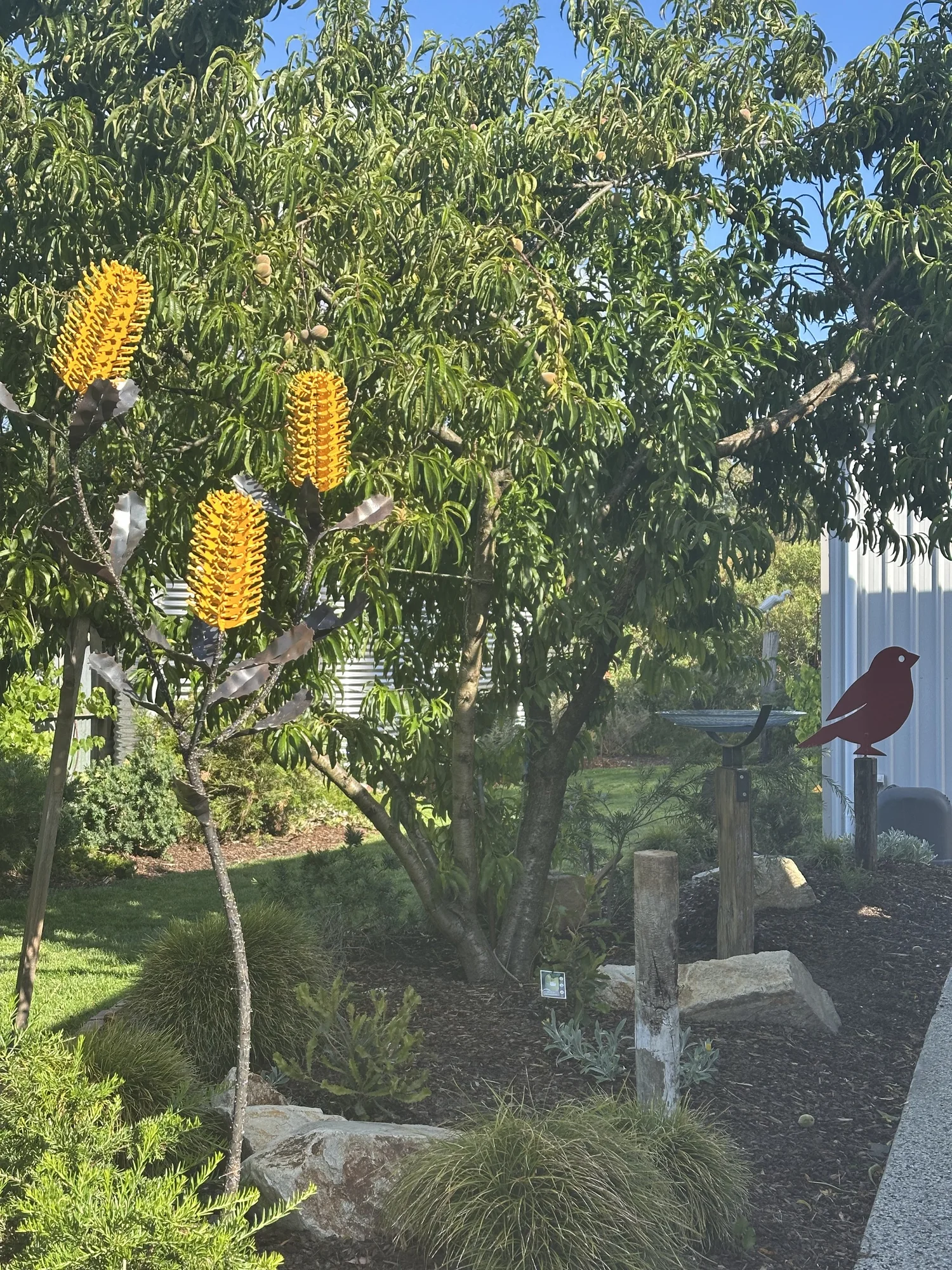 Banksia Baxteri Tree sculpture with Honeyeater. By Grant Flather