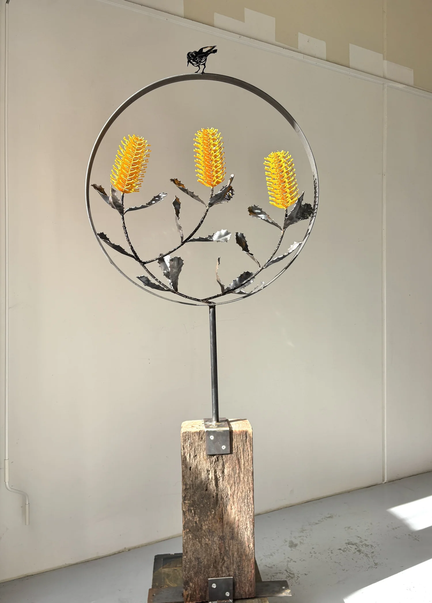 Triple Medium Banksia Standing Sculpture with bird by Grant Flather